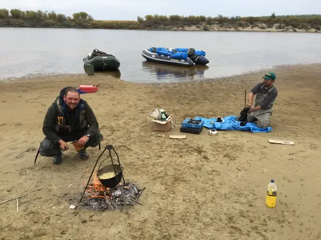 Берега реки быстро накрыла темнота, и только таинственная луна освещала путь запоздалым путникам. Потянуло осенним холодом. Молча сидя у костра, мы вслушивались в темноту, с нетерпением ожидая «Сузумар». Я достал мощный фонарь и лучом пробежал по темным берегам. И вдруг вдалеке послышался вроде как шум мотора, прислушались и вправду мотор, а потом и радостные возгласы наших друзей. Парни прибыли, словно по расписанию, стрелки показывали восемь. За четыре часа пути они изрядно устали и замерзли. Мы сразу предложили горячую кашу с тушенкой и теплую одежду. Усевшись у костра, стопочкой отметили первый транзитный лагерь. С нами была единственная женщина — гитара, она окончательно дала понять, как далеко мы сейчас от городской суеты и привычных семейных дел...