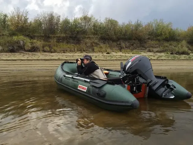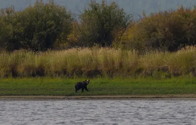 В один момент Егор говорит: «Подержи румпель, телевик (объектив) надену, а то там утки в воде, поснимать хочу». Беру румпель, Егор, надевая телевик, говорит: «А утки-то на берег пошли… Ба-а-атюшки мои, да это вовсе и не утки, а медведи!» Вот это да-а-а. Медведица с медвежатами купались в реке и, увидев нас, быстро выбежали из воды, отряхнулись, как это делают собаки, и умчали в лес. По рации передаю парням, которые позади от нас метрах в ста: «Леха, Саня, здесь медведи на берегу». А у пацанов в это время закончился бензин, и они как раз заправлялись на берегу. Услышав наше сообщение, сделали это гораздо быстрее — текучесть бензина увеличивалась сама собой! Глаза их стали круглыми, а шея очень поворотливой, ибо встретиться с мамашей маленьких щеголят им очень уж не хотелось.