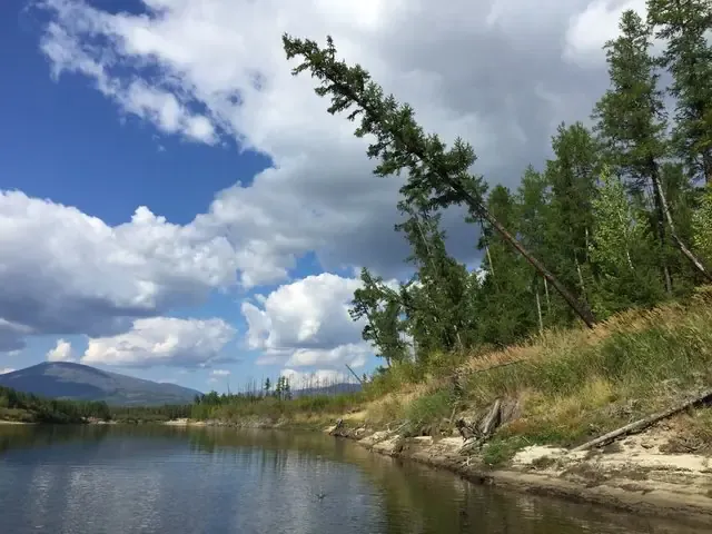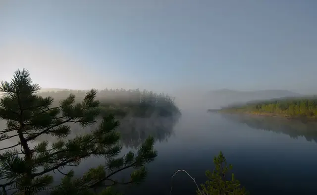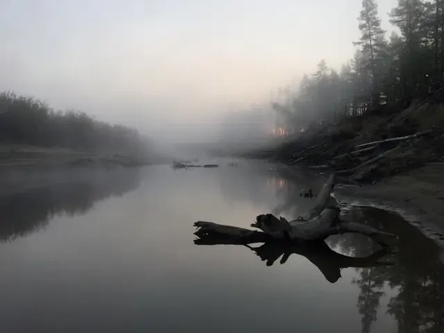 Туман ковровой дорожкой стелился над рекой, роса немного подмочила неубранные с вечера вещи. Очнувшись от сна и выпив горячего кофе, мы встретили первый таежный рассвет. 6:00. Нужно двигаться дальше. Схема передвижения прежняя, изменился только экипаж лодок. В этот раз с Егором поехал я. Нужно было пройти еще 45 км до места, в котором собирались стоять три дня, а потом двигаться до конечной точки. 45 км преодолели за пять часов в режиме водоизмещения. Солнце стояло высоко и грело жарко, так что мерзнуть не пришлось.