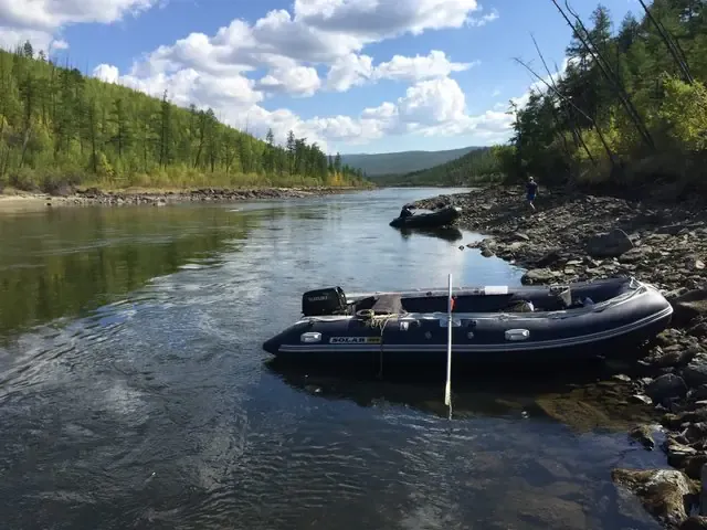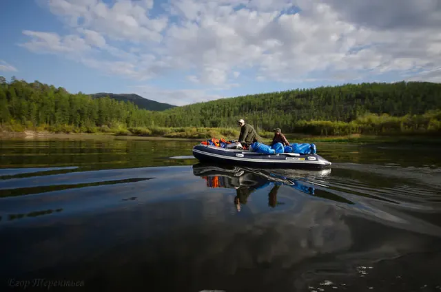 Моторы быстро уносили нас вдаль. Шли четко и по расписанию, с трудом проходя мели. И на одном из таких препятствий экипаж Алексея и Александра налетел на камни, вследствие чего двигатель (тридцатка) работал, но винт не крутил. Было около полудня. Пройдено примерно полпути. В глазах недоумение и больше вопросов, чем ответов. Егор предлагает идти за помощью к мужикам из Читы, их лагерь уже должен быть где-то рядом. В итоге коллегиально решаем, что надо позвонить в сервисный центр, пусть специалисты подскажут, что можно сделать в полевых условиях, чтобы хоть как-то двигаться дальше.