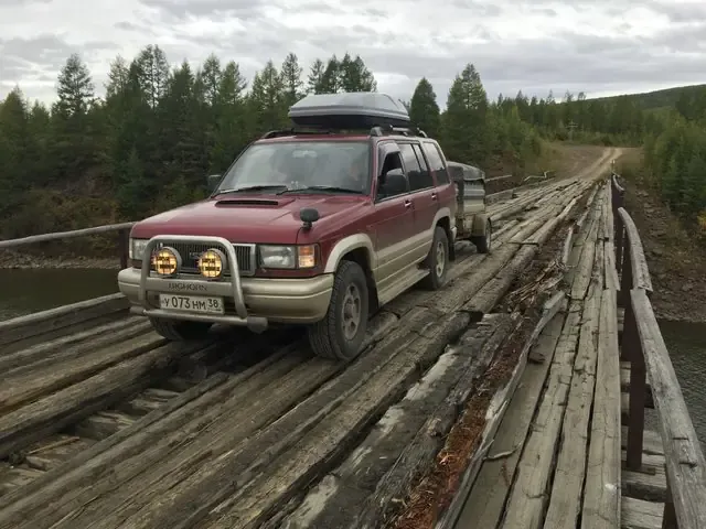 Подъем был в 06:00. Немножко придя в себя после пройденных 1044 км, заехали на заправку. Заполнив все 20 канистр, рванули дальше. Нас ждали еще 120 км, но уже по более плохой дороге. Минуя два брода (в этом году от небывалой жары, река Талой была практически ручейком), «Бигхорн» без осечки доставил нас до Горячего. Пострадали только стоп-сигналы на телеге, так как она из-за нагрузки периодически долбилась о землю задней частью.