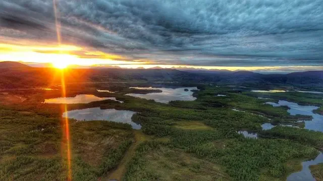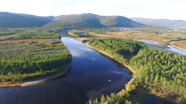 Подошли к месту, обозначенному на нашей карте, как место перехода в озера. Здесь нужно было провести разведку квадрокоптером и понять, получится у нас добиться цели или нет. Разведка показала, что должно все получиться. Изначально план был такой: идем до назначенного лагеря на Ципе, стоим дня три, отдыхаем, наслаждаемся природой и рыбалкой, потом собираем все необходимое, берем одну палатку и отправляемся на озера дня на два.