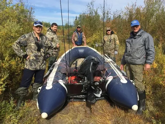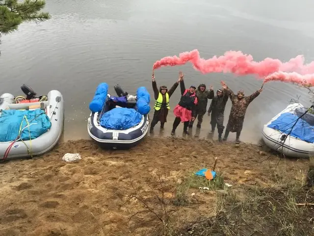 После этих слов мои 50% «против» полностью переросли в 100% «за». Подбадривая сомневающихся, решаем идти. Для этого необходимо было подкрепиться, что мы и сделали. Три банки тушенки, полбулки хлеба и паштет решили наш вопрос с голодом. Разгружаем лодки. Первой была «Ротан». Пытаемся нести ее с мотором. Взвалив на плечи и пройдя метров 20–30, понимаем, что это очень тяжело. Снимаем мотор и под «военный немецкий марш» идем дальше.