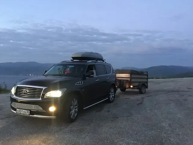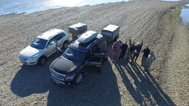 Время рассчитано по минутам — всегда есть план по времени, которого обязательно нужно придерживаться, иначе все это ведет к непредвиденным ночевкам непонятно где, а еще хуже — к ненужным транзитным лагерям. Так как нас уже шестеро, машин теперь тоже две — это Infiniti QX 80 и Volkswagen Touareg. Обе с прицепом.