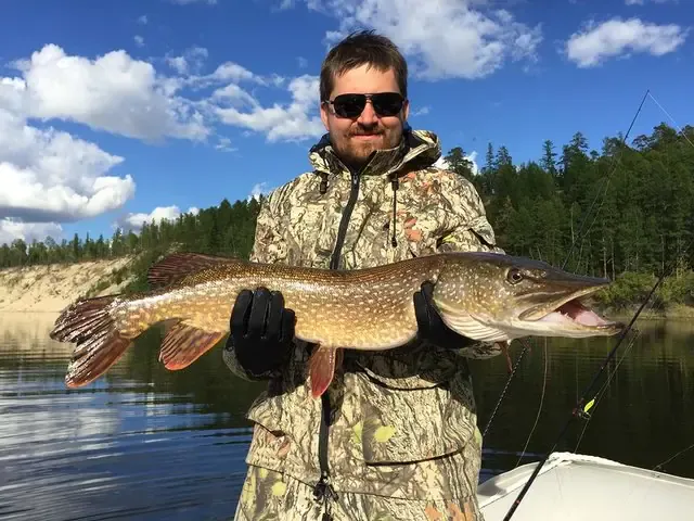 Еще один интересный факт: в этот раз удавалось ловить щуку в отвес с лодки способом опускания вверх-вниз джига. Сделали вывод, что щука, после того как сорвется с крючка или вовсе оторвет приманку, продолжает охотиться. Алексей делает заброс — почти сразу удар и обрыв приманки: фрикцион был затянут чуть сильнее, чем нужно… Расстройство и сожаление. Минут через 30 на том же месте у меня поклевка — вытаскиваю щуку 6,5 кг, во рту у нее торчит джиг, который был оторван у брата. Вот это да, вот это сюрприз!