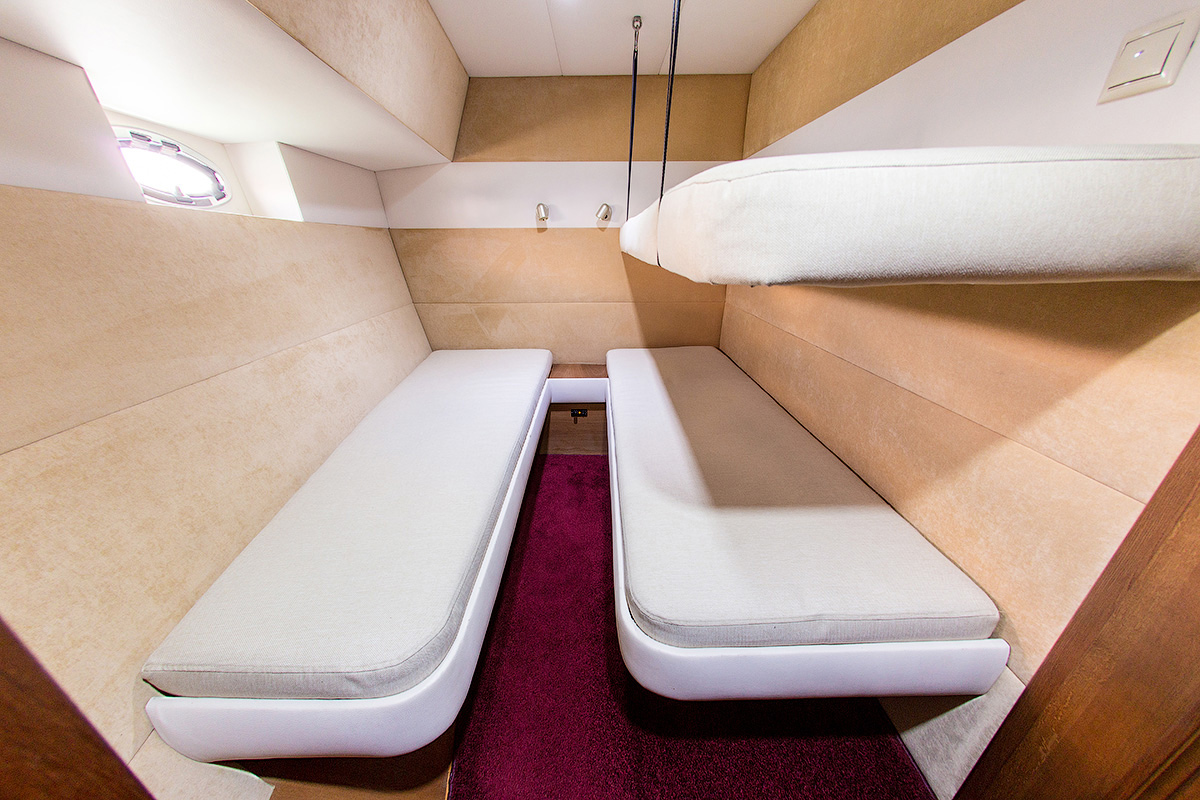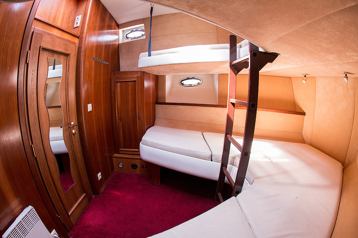 Носовая каюта №1: 4 человека (2 кровати и 2 кровати верхнего яруса).