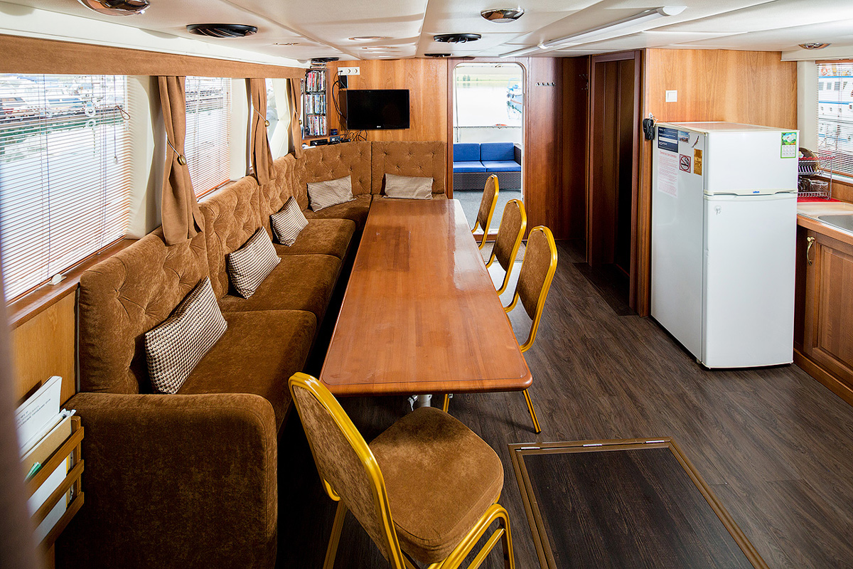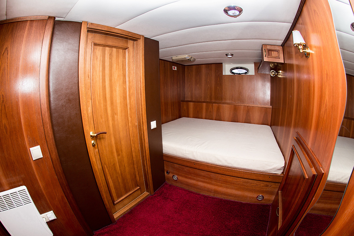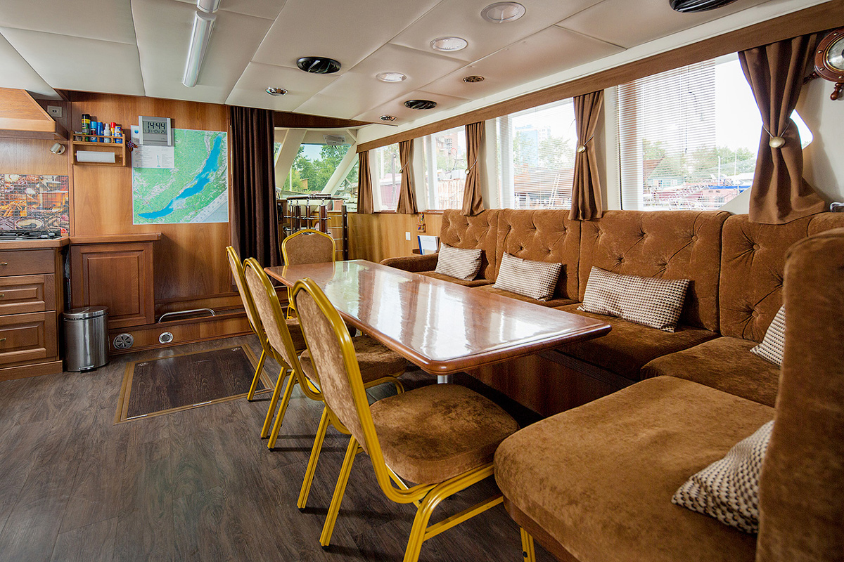 В отделке интерьера использованы ценные породы дерева: благородный дуб и изысканное красное дерево сапеле.К вашим услугам четыре комфортабельные каюты: