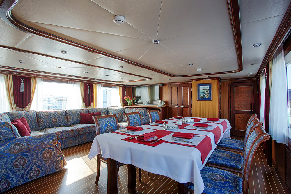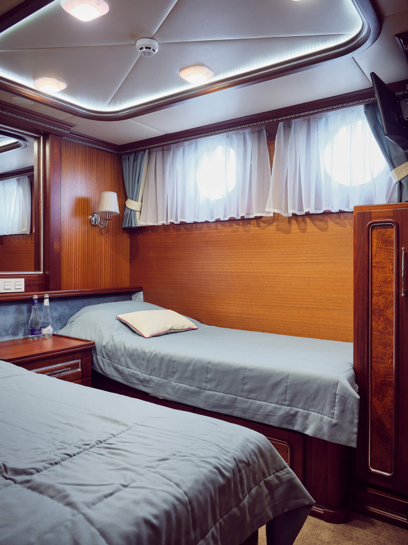 - Количество кают для туристов - 7, включая шеф-каюту на верхней палубе