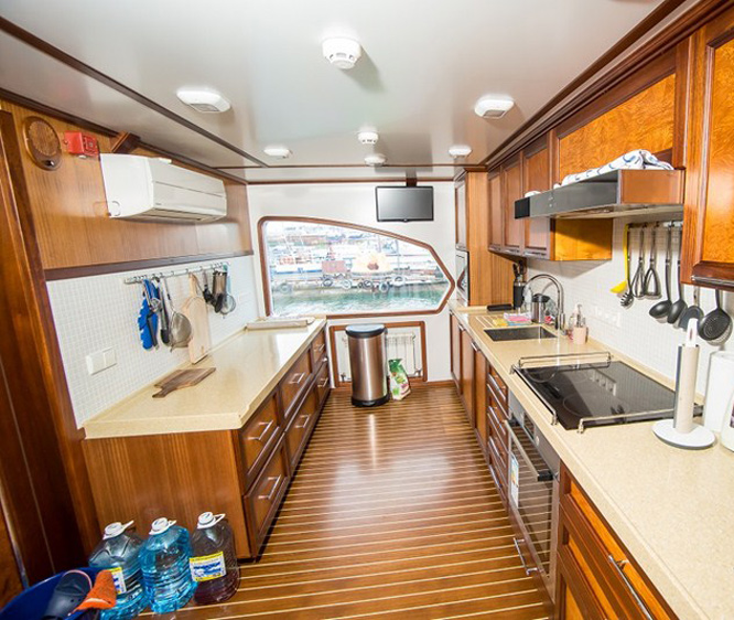 Корма яхты имеет прекрасно оснащенную зону отдыха – диван с мягкими подушками, стулья-трансформеры, сауна, мангал, место для рыбалки. Большая открытая палуба с шезлонгами — идеальный уголок для того, чтобы наблюдать за закатом или восходом солнца, ночным небом в романтической обстановке/
