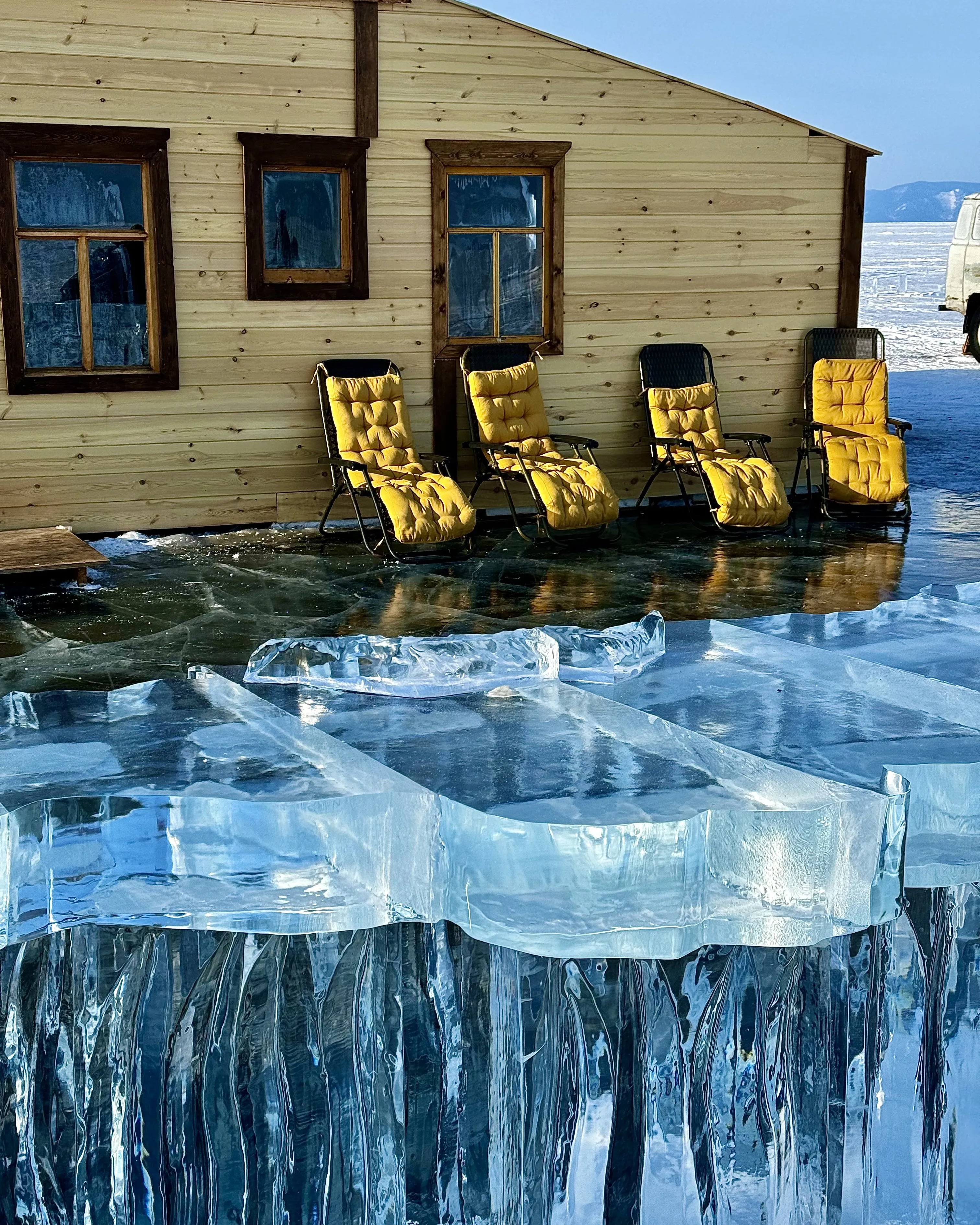 - Попарились в бане прямо на льду Байкала.