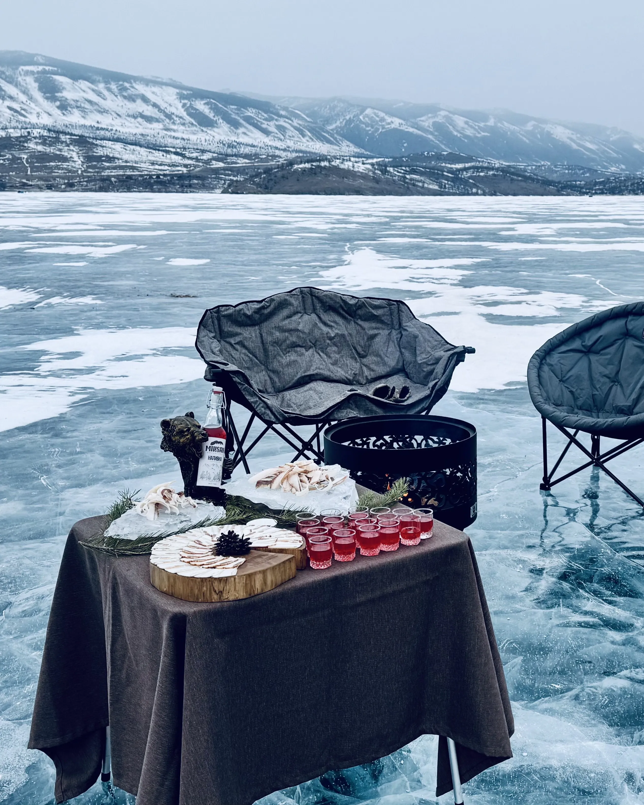 19:00 — Особая магия вечера — ужин на льду Байкала. Шеф-повар подготовил для нас настоящую гастрономическую феерию прямо на прозрачном льду. Лёд под ногами живёт своей жизнью, передавая звуки и вибрации, создавая ощущение единения с природой.