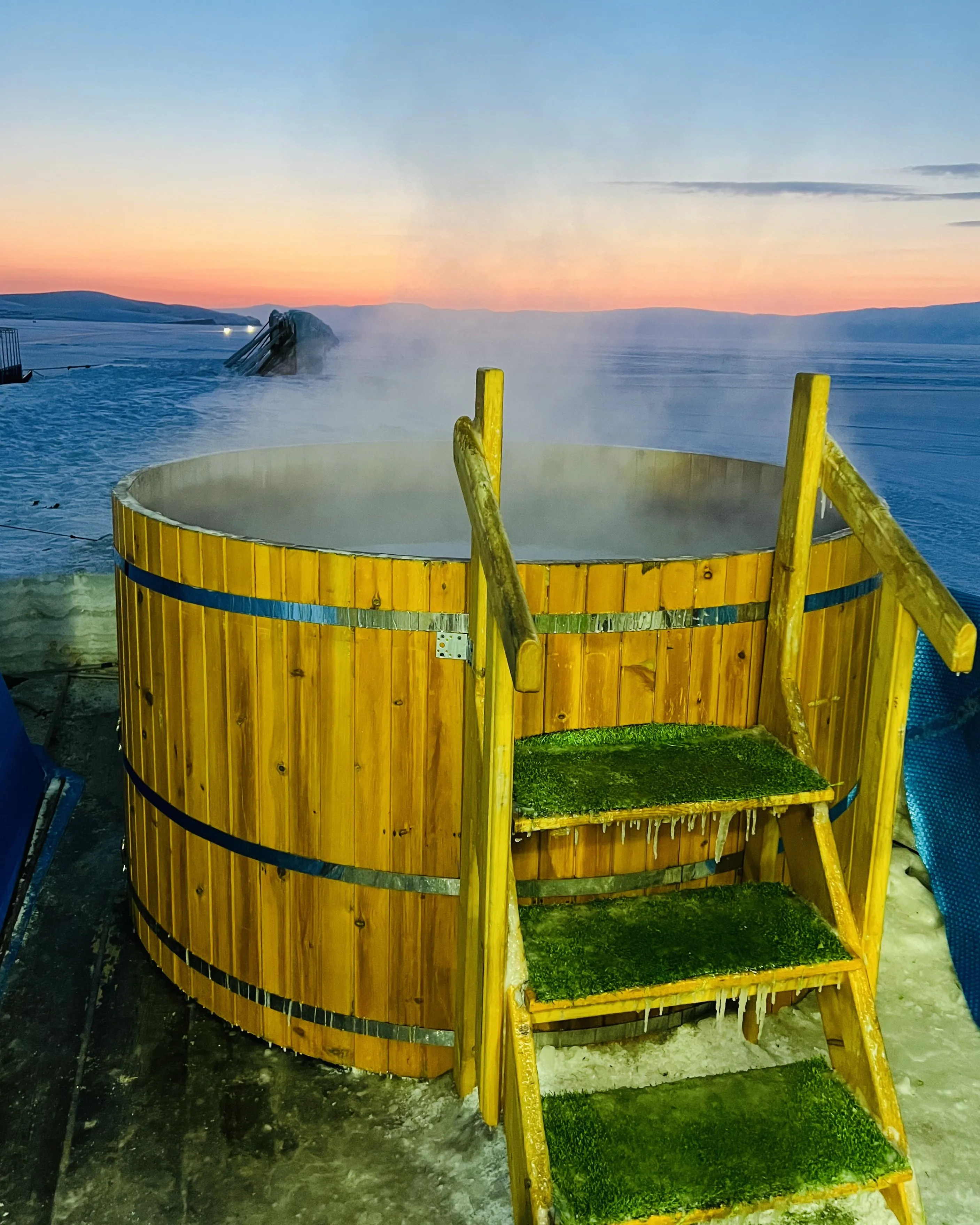 17:00 — Баня на льду Байкала с ледяной прорубью — незабываемый опыт очищения души и тела.